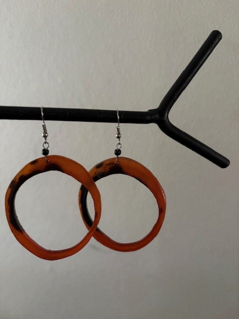 A pair of african handmade dangling red with black tints cowhorn ring earrings