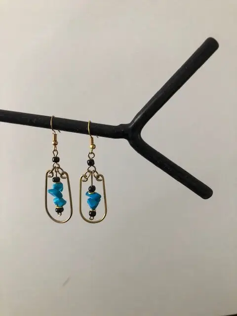 A beautiful pair of Kenyan handmade dangling blue stone colour earring surrounded with oval brass